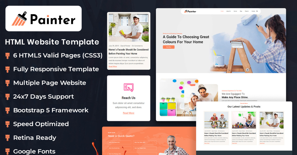 Painter Html-sjabloon kan als een viool op uw website passen. Een professionele lay-out met Bootstrap 5-framework en aanzienlijke browsercompatibiliteit kunnen u helpen de verbluffende groeigrafieken te vinden.