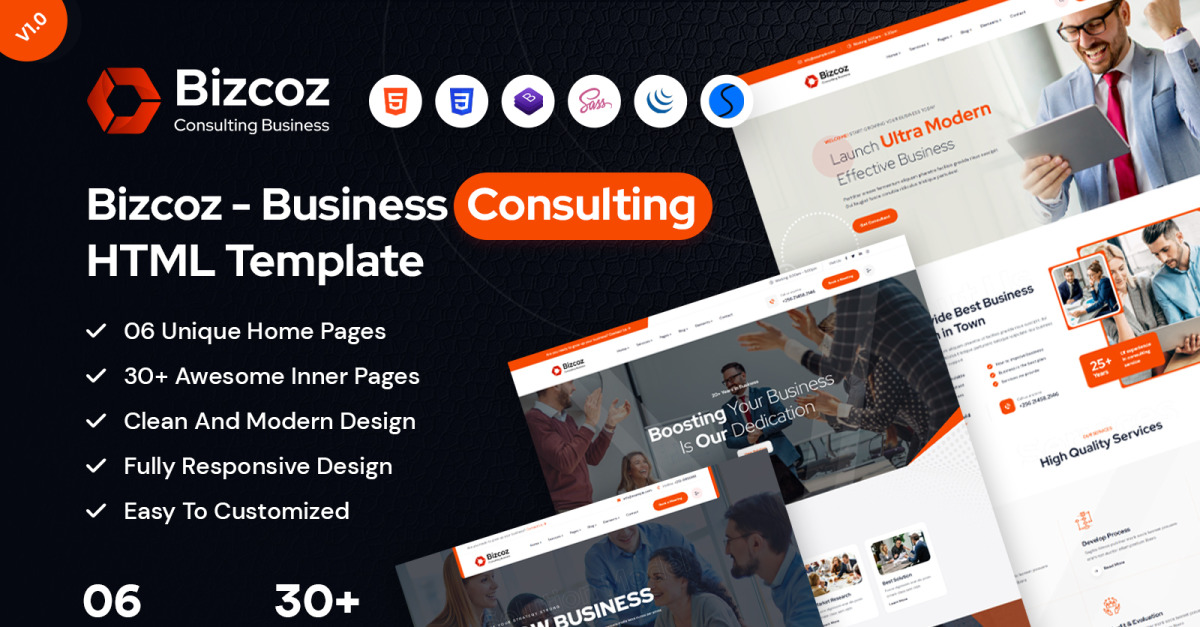 Bizcoz is een moderne en schone unieke Consulting Business HTML Template die zal werken voor Consulting Businesses, Corporate Businesses, en Financial, Insurance, en Marketing bedrijven, etc websites. Bizcoz is gemaakt met Bootstrap 5 en de nieuwste Preprocessor technologie zoals SCSS technologie zodat u eenvoudig kleur, lettertype, etc kunt veranderen met behulp van variabelen. Bizcoz wordt geleverd met 06 geweldige huizen en goed georganiseerde 30+ Inner Templates.