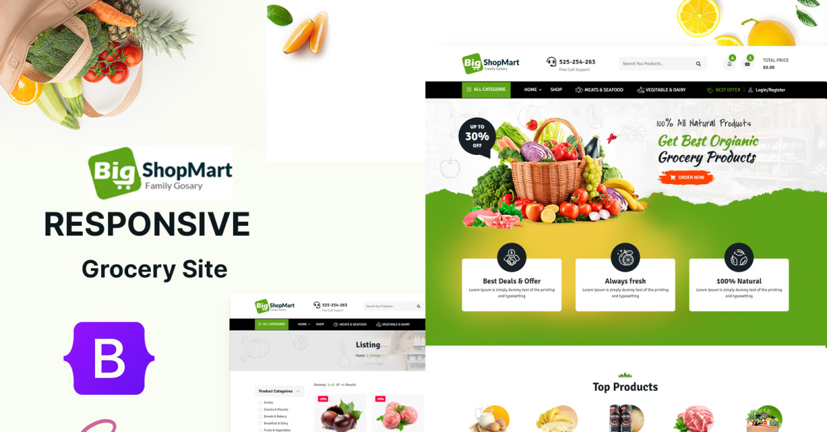 Bigshopmart - HTML5-websitesjabloon voor online kruidenierswinkel