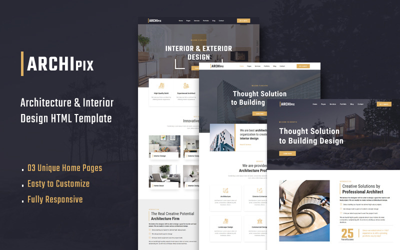 Archipix Template is met name geschikt voor interieur- en exterieurontwerp, appartementontwerp, structuurontwerp, constructieontwerp, enz. Archipix helpt u om in een mum van tijd een mooie en actuele website te bouwen. Archipix wordt geleverd met de nodige functies voor uw online aanwezigheid, zoals projecten en projectdetails, over ons, diensten en services Datils en blog- en winkelpagina's enz.