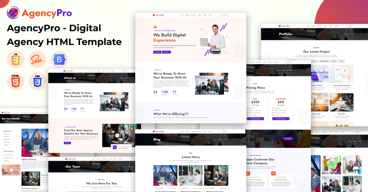 AgencyPro - HTML-sjabloon voor digitaal bureau