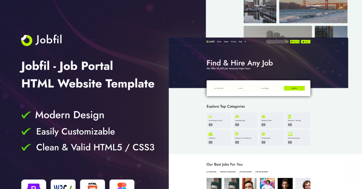 Jobfil- bevat eenvoudige, eenvoudig aan te passen HTML-sjablonen en componenten, enz. Bovendien garanderen we dat u snel elke vorm van een vacatureportal-geclassificeerde websitesjabloon voor werkzoekenden en recruiters kunt bouwen met behulp van deze vacaturesjabloon, die een uitstekende unieke nieuwste functie heeft. nieuw ontwerp.