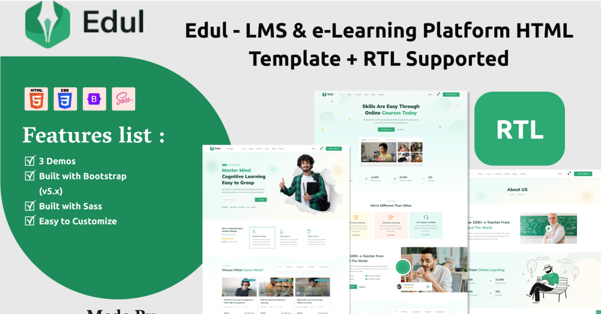 Titel: Edul - LMS & e-Learning Platform HTML-sjabloon + RTL ondersteund