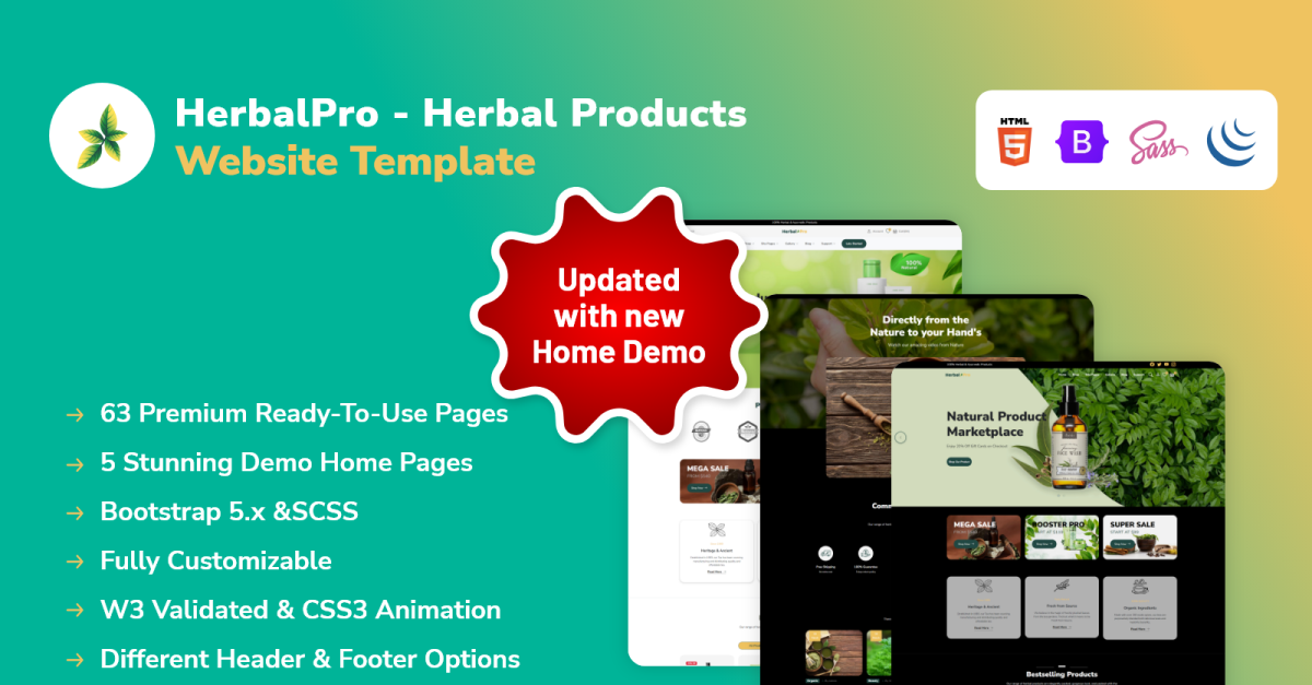 Herbal Pro is een HTML5-websitesjabloon, ontworpen voor kruiden- en ayurvedische producten. Het is beschikbaar met verschillende soorten demo-homepages in hoge kwaliteit. Daarnaast bevat het meer dan 60 pagina's die aan verschillende behoeften voldoen. Met de Herbal Products-websitesjabloon kunt u uw kruiden- en natuurlijke producten heel eenvoudig promoten. Met de Herbal Pro Herbal Products-websitesjabloon krijgt u alle componenten te zien waarmee u eenvoudig een e-commercewebsite kunt maken. Dit is een van de meest en beste e-commercewebsitesjablonen, ontworpen om de producten van Herbal Products te presenteren. Het bevat veel geweldige functies die het onderscheiden van alle andere sjablonen. De uitgebreide ontwerpstructuur is zo ontworpen dat het gemakkelijk aan de behoeften van de klant kan voldoen.