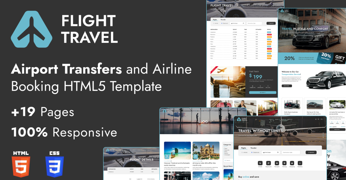Vluchtreizen - luchthaventransfers en boeking van luchtvaartmaatschappijen HTML5-websitesjabloon