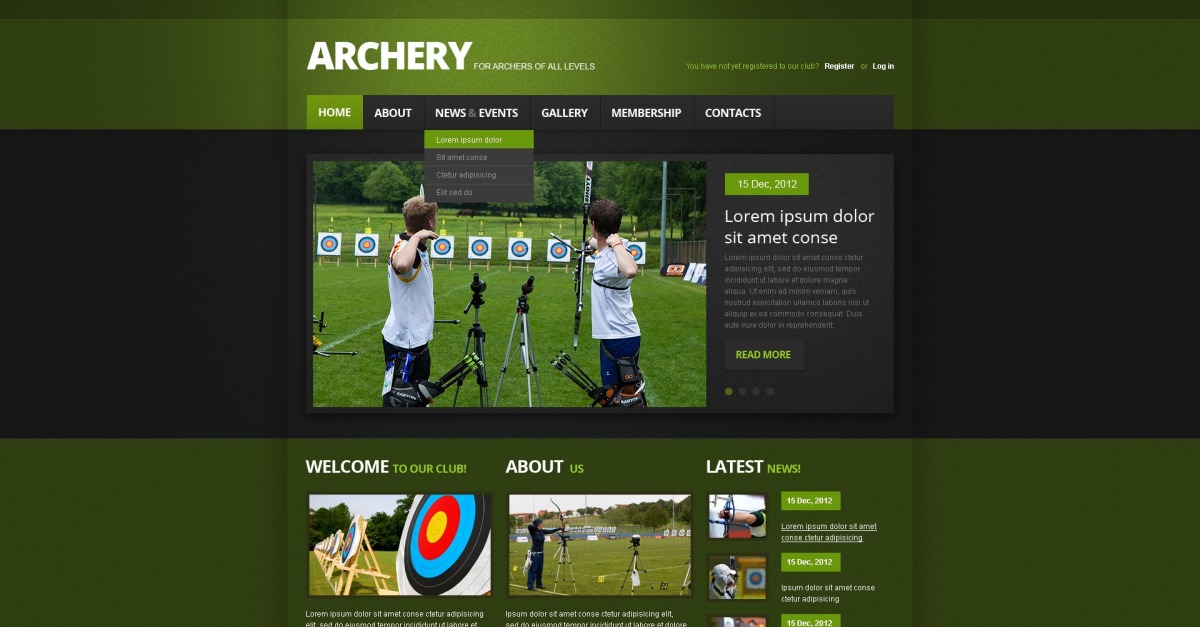 Dit ontwerp van de website voor boogschietwedstrijden is een zeer effectief product dat zich kan aanpassen aan een bepaalde functie. Het werkt perfect voor het introduceren van een boogschietclub, sportboogschieten of boogschietwinkel, en ook voor andere projecten op internet. Als u dit thema kiest, krijgt u de kans om een uitstekende aanwezigheid op het web op te bouwen die uw bedrijf professioneler en eleganter onder de aandacht van het internetpubliek zou brengen. Als u vragen heeft over het gebruik van sjablonen, kunt u gedetailleerde documentatie raadplegen. U krijgt ook 24/7 prioriteitsondersteuning om te helpen bij het oplossen van elk probleem. Onderzoek dit themaontwerp. U zult blij zijn met zijn geweldige eigenschappen!