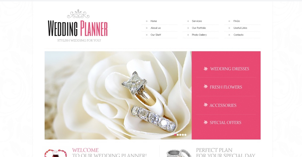 Als u een professioneel ogende website wilt uitbrengen, zal deze responsieve websjabloon voor een bruiloftsconsulent u helpen deze taak in een mum van tijd te volbrengen. Ontdek een eenvoudig te gebruiken webdesign voor een website voor een bruiloftsplanner, gemaakt voor een bruiloftsplanner of een bureau voor huwelijksplanners. Dankzij de responsieve en cross-browser-compatibele structuur van het thema, werkt uw webbron probleemloos op elk handheld-gadget en in elke moderne internetbrowser. Dit specifieke websitesjabloon is ook goed gedocumenteerd en wordt geleverd met deskundige 24/7 assistentie. Als u kiest voor eersteklas en professioneel ontwerp, selecteert u dit sjabloon voor uw webpagina!