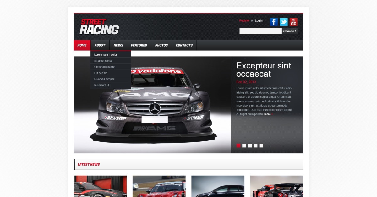 Dit ontwerp van de Street Racing-website is responsief