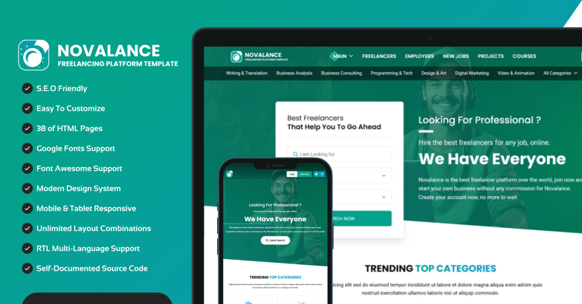 Novalance - Jobportaal en Freelancer Marktplaats - Schone minimalistische HTML-sjabloon