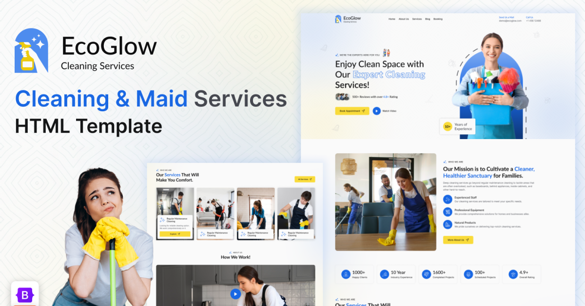 EcoGlow is een moderne, strakke en professioneel ontworpen HTML5-websitetemplate, speciaal ontwikkeld voor schoonmaakbedrijven, schoonmaakbedrijven, aanbieders van sanitaire voorzieningen voor particulieren en bedrijven, en milieuvriendelijke start-ups in de schoonmaak. Of u nu een klein schoonmaakteam heeft of een gevestigd schoonmaakbedrijf dat uw online aanwezigheid wil vernieuwen, de EcoGlow HTML5-website is de perfecte digitale oplossing.
