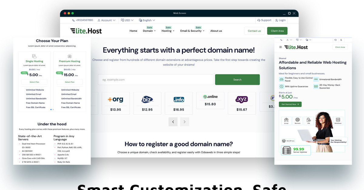 Een modern, aanpasbaar en upgrade-veilig WHMCS-childthema, speciaal ontwikkeld voor webhostingproviders.