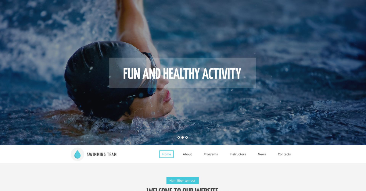 Dit ontwerpsjabloon voor een zwemwebsite is responsief
