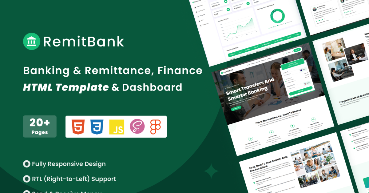 RemitBank – HTML-sjabloon, RTL en dashboard voor bankieren en overboekingen