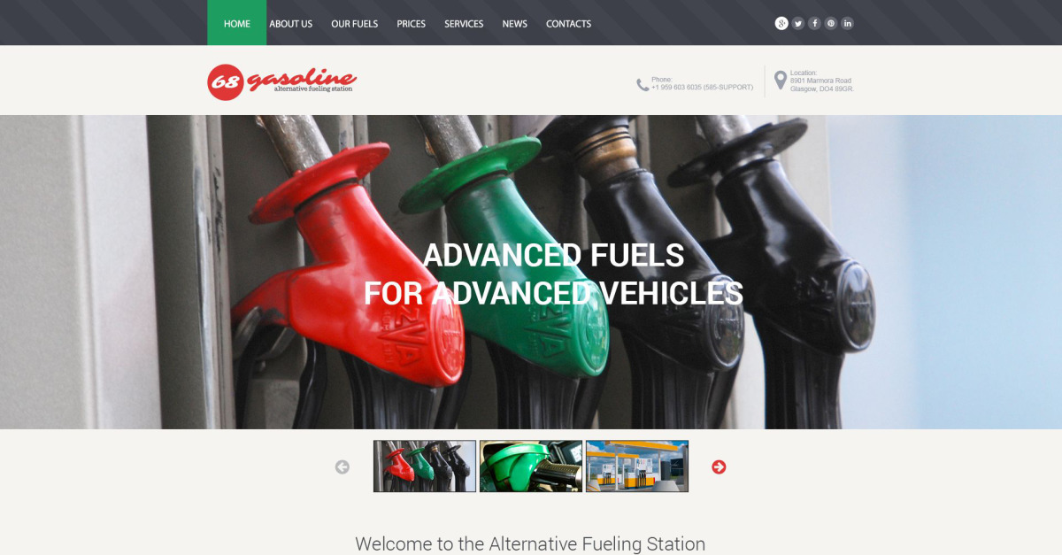 Website sjabloon voor alternatieve tankstations