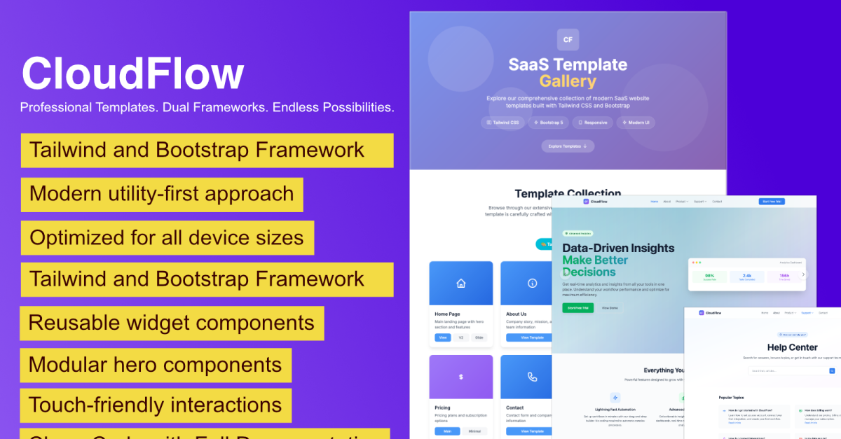 CloudFlow Multipurpose SaaS-sjablooncollectie - Complete HTML-sjablonen voor moderne SaaS-websites