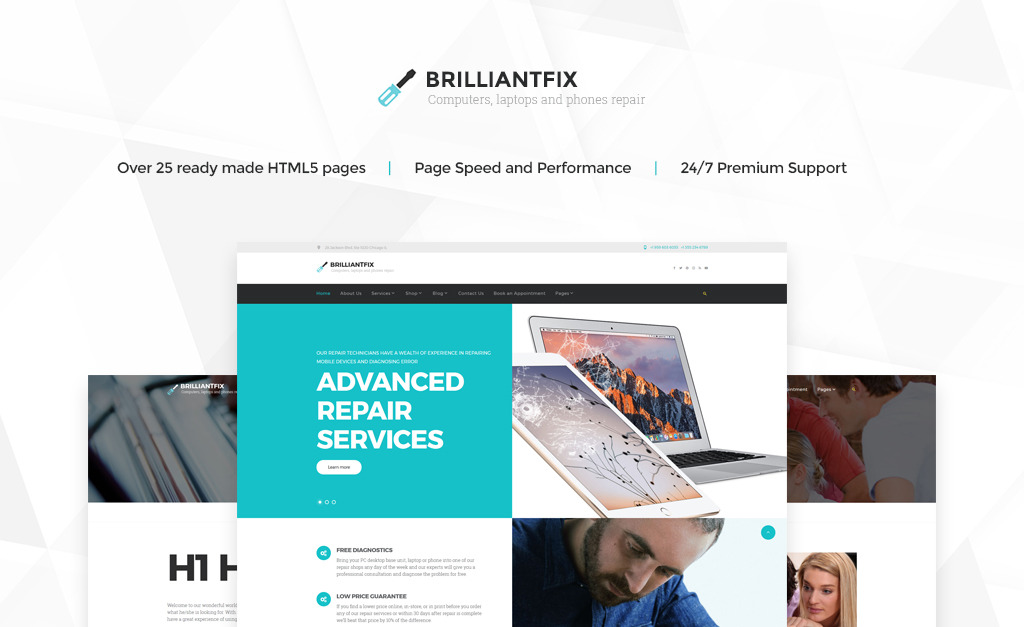 BrilliantFix - Website sjabloon voor servicecentrum
