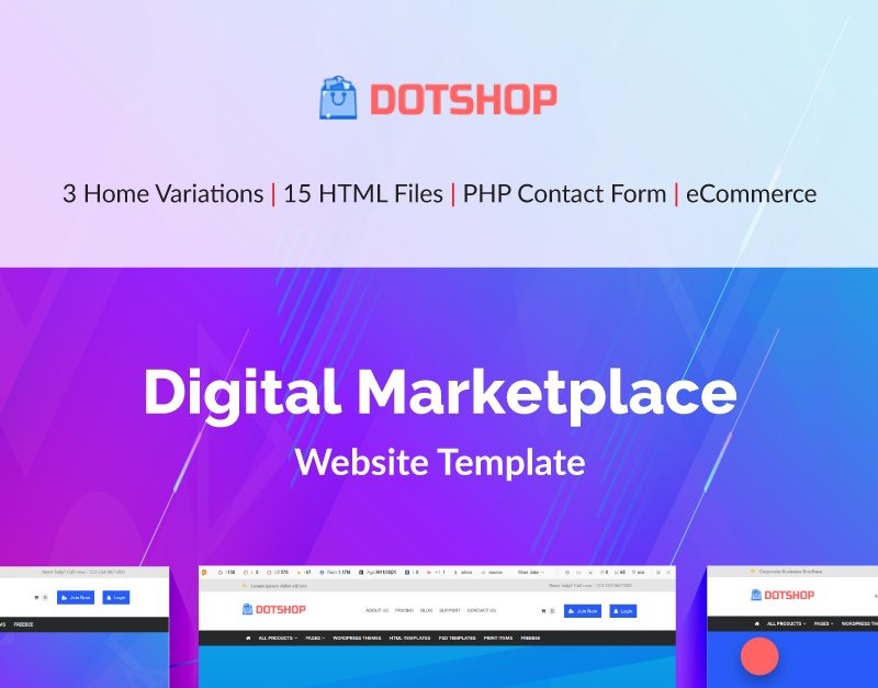 DotShop is een moderne en flexibele Marketplace-websitesjabloon. Dit is een perfecte sjabloon voor elke marktplaatswebsite. Maar het is speciaal voor het online verkopen van digitale producten.