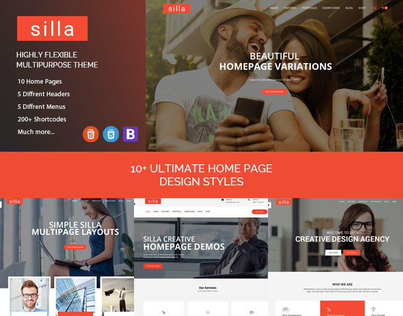 Silla is een responsieve HTML5 / CSS3 (desktop, tablet, mobiele telefoon...) eenvoudige, schone en professionele sjabloon. Het wordt geleverd met meer dan 10 homepages, veel meer binnenpagina's, geweldige diavoorstellingen en kleurvariaties. Eenvoudig aan te passen en volledig uitgerust ontwerp. Deze sjabloon is gemaakt voor alle zaken, zoals Corporate, Business, Portfolio, Creative, Blog, Construction