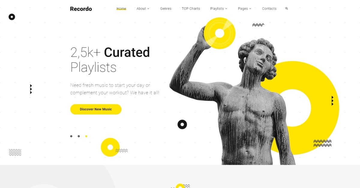 Een website die is ontwikkeld voor bedrijven die met muziek te maken hebben, moet dit uitstralen in het ontwerp. Het moet creatief zijn. En je kunt zien dat Recordo een geweldige keuze is voor muziekportaal, muziekstreamingservice, muziekbandwebsite enzovoort. Het heeft een modern design met aantrekkelijke designelementen. Bovendien kunt u dankzij meerdere vooraf gebouwde pagina's alle benodigde informatie op de meest geprefereerde manier presenteren. En als je informatie wilt verspreiden, kun je bloggen. Of u kunt de galerij gebruiken om indruk te maken op klanten met afbeeldingen op uw website. U kunt ook de ontwerp- en structurele opties op Recordo bekijken. En dankzij betrouwbare codering is deze sjabloon volledig bewerkbaar en responsief. Bovendien zal het gemakkelijk zijn om contact te houden met je fans en klanten via sociale opties, contactformulier en getuigenissen.