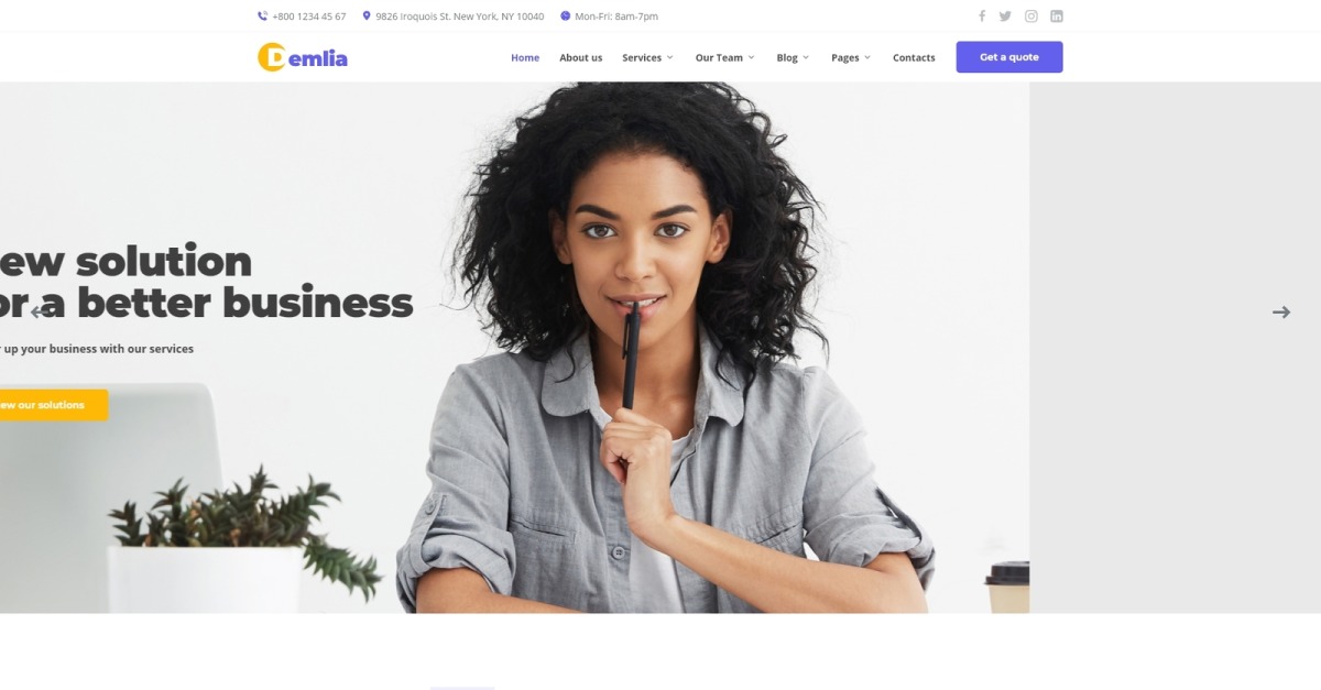 Een website-ontwerp voor bedrijfsadvies kan uw website een krachtige online boost geven. Bovendien is het geweldig om reclame te maken voor uw diensten, ongeacht met welke bedrijven u werkt. Een goed ontworpen website kan meer potentiële klanten aantrekken. Precies voor dat doel hebben we onze nieuwe oplossing ontworpen: Demlia HTML-sjabloon met meerdere pagina's.