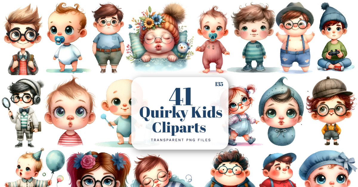 Eigenzinnige kinderclipart, Eigenzinnige meisjesclipart, Jongenclipart, Aquareljongen, Babyjongenclipart | 135