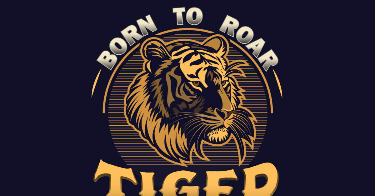 Born to Roar – Tiger Bold Krachtig Ontwerp voor T-shirts, Sport, Merchandise, Multifunctioneel Gebruik