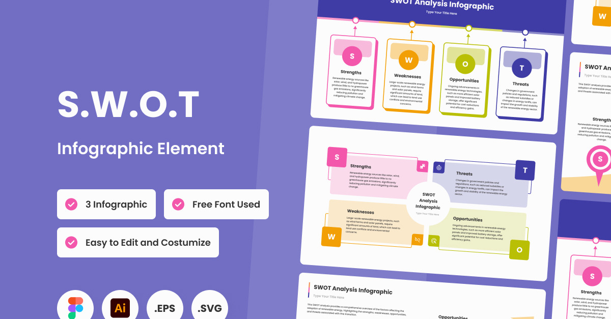 Verbeter uw strategische planning met SWOT Infographic Template V2. Deze template is ontworpen voor duidelijkheid en impact en helpt u een uitgebreide SWOT-analyse te presenteren, wat betere besluitvorming en strategische inzichten mogelijk maakt. Ideaal voor bedrijfsadviseurs, managers en ondernemers.