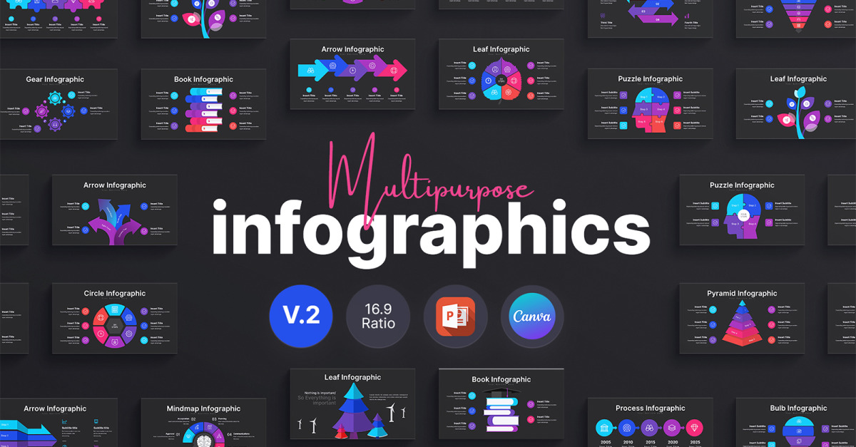 Multifunctionele infographics presentatiesjabloon (V.2.Donker)