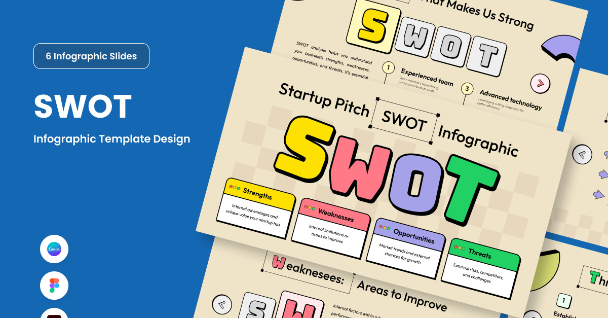 Een strakke, hightech lay-out, speciaal ontworpen voor zakelijke geesten die helderheid en vertrouwen willen in elke pitch. Ideaal om je SWOT-analyse helder te visualiseren en tegelijkertijd een strakke, professionele toon te behouden. Perfect voor presentaties in startup accelerators, demodagen of strategische bijeenkomsten.