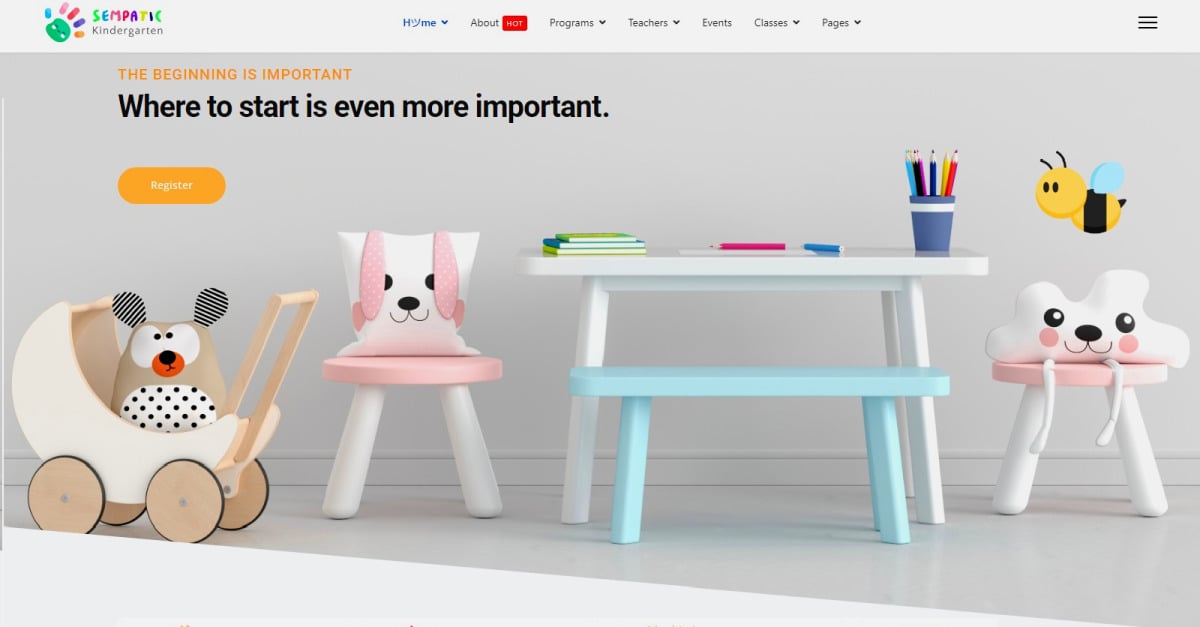 Elke activiteit op de kleuterschool zorgt ervoor dat het kind op fysiek en mentaal gebied geen achterstand oploopt en zich voortdurend ontwikkelt. Het is noodzakelijk om een goede website te promoten die ouders laat zien dat je deze activiteiten kunt doen. Met de Sempatic Theme Kindergarten-ready-website kunt u uw kleuterschool en kinderdagverblijf eenvoudig en snel aan mensen voorstellen. U kunt deze mogelijkheid krijgen door een aankoop te doen bij ons thema, dat prettig, gemakkelijk te gebruiken en van hoge kwaliteit is.