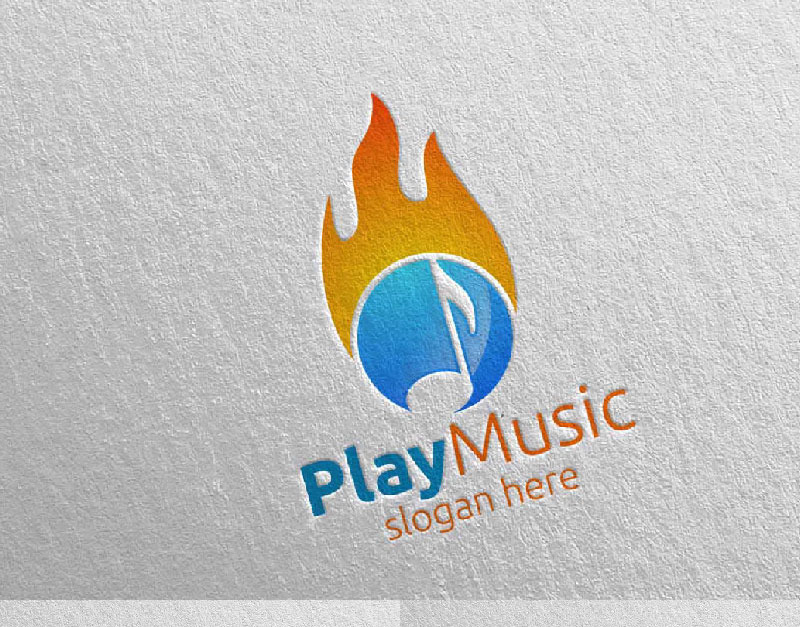 Muziek met notitie en vuur Concept 28 Logo sjabloon