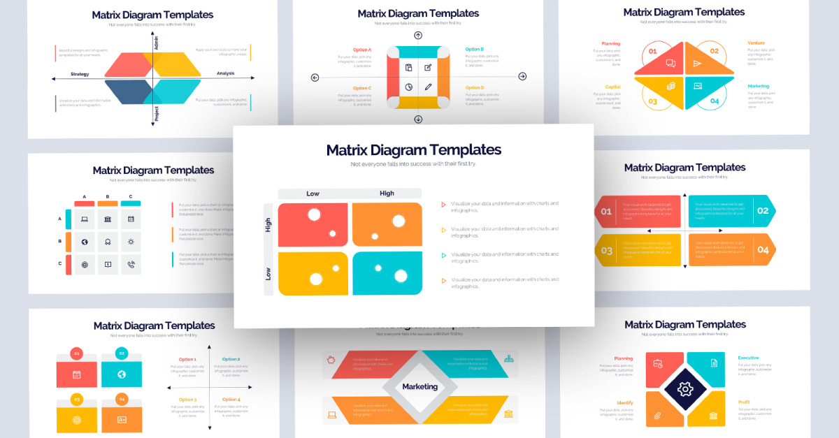 Matrixdiagram Infographic PowerPoint-sjabloon Plat, schoon, minimalistisch, elegant en flexibel presentatiesjabloon.
