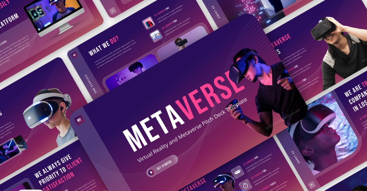 Metaverse - Glassmorphism Virtual Reality en Metaverse Pitch Deck PowerPoint-sjabloon