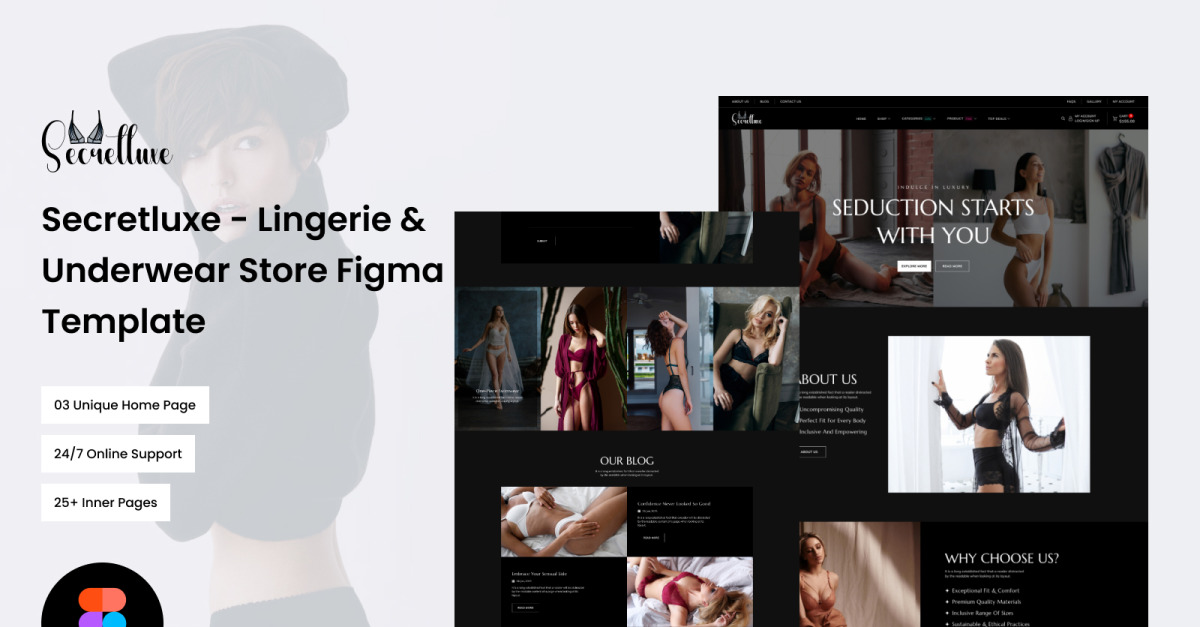 Secret Luxe - Moderne lingerie & multifunctionele eCommerce Figma-sjabloon