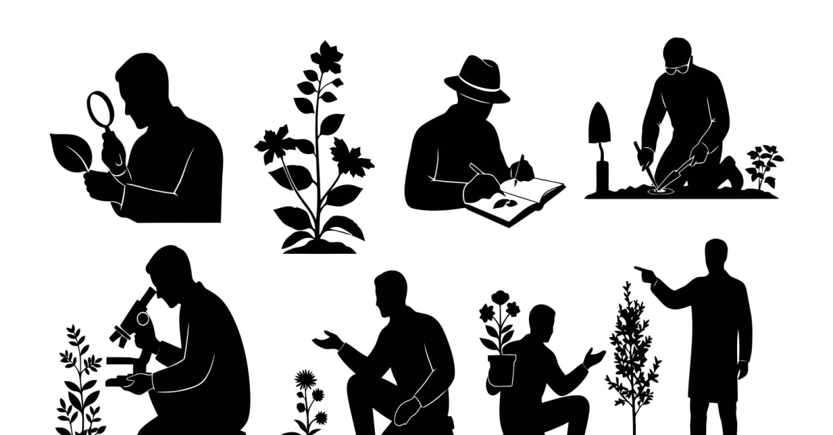 Set silhouetillustraties van plantenverzorging in de tuin, geïsoleerd op een witte achtergrond. € 8 Download