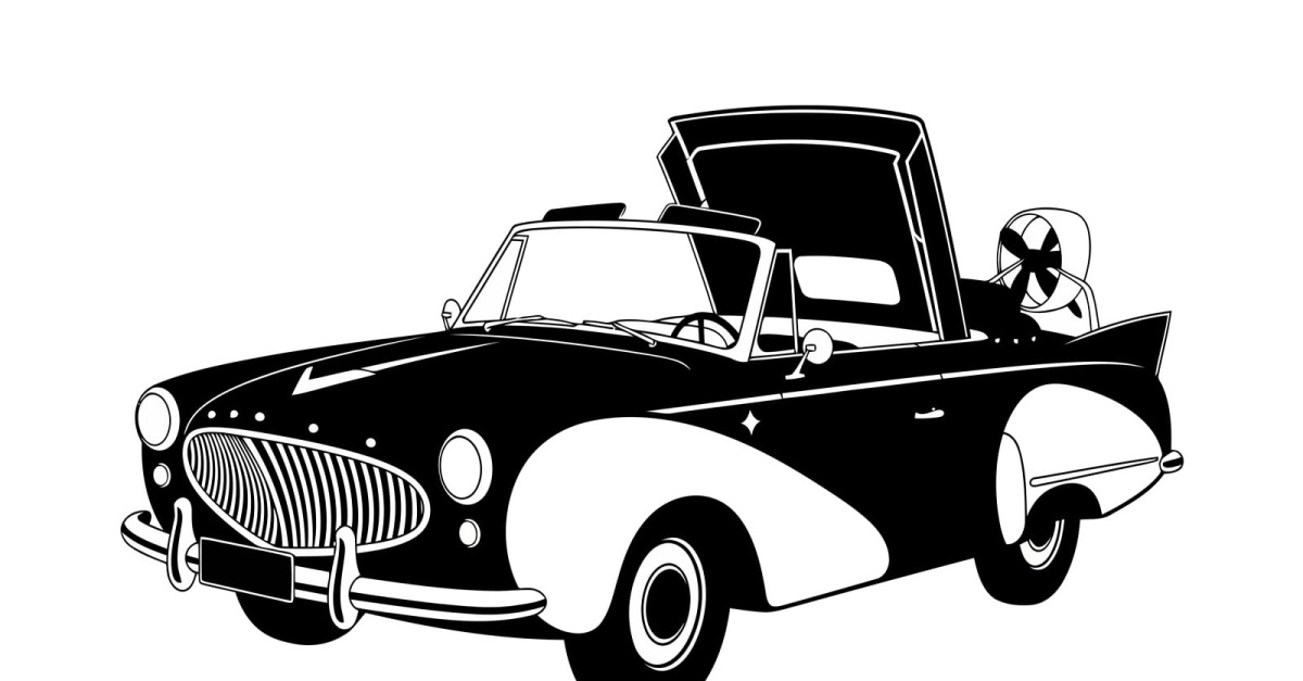 Vintage luxe coupé auto illustratie in klassiek zwart-wit, geïsoleerd op een witte achtergrond. € 8 Download