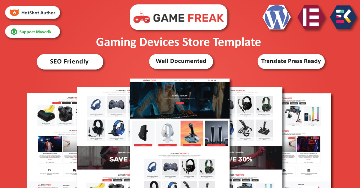 Game Freak – Gaming-apparaten en accessoires WooCommerce Elementor-sjabloon