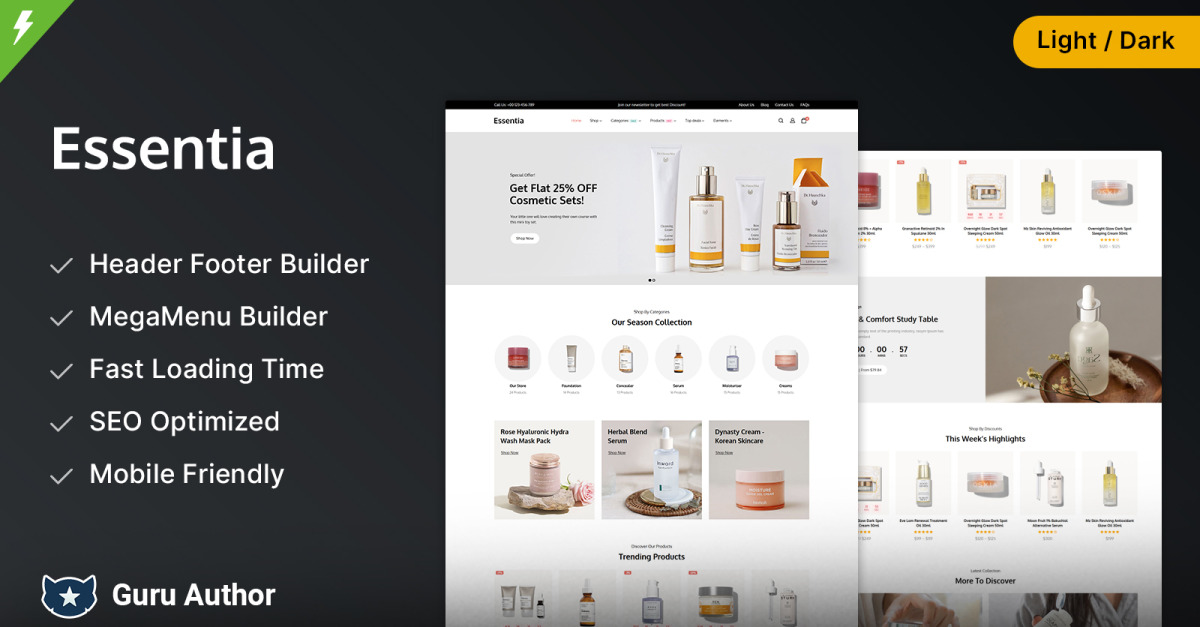 Maak kennis met Essentia — een strak, modern WooCommerce-thema van TemplateMela , speciaal ontworpen voor cosmeticawinkels , kruidenwinkels , merken voor alternatieve geneeswijzen , klinieken voor plastische chirurgie , modewinkels en modebloggers . Of u nu luxe parfums, biologische huidverzorging of trendy modeaccessoires wilt presenteren, Essentia combineert stijl en functionaliteit voor een vlekkeloze online aanwezigheid.