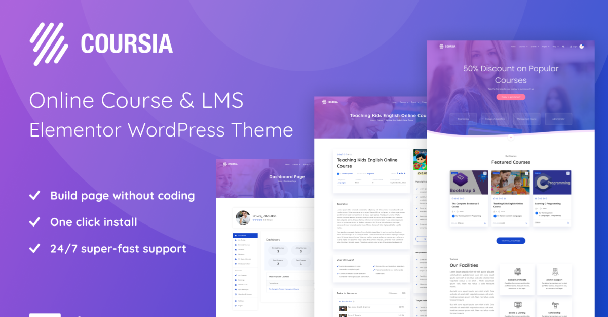 Coursia is een veelzijdig eLearning WordPress LMS (Learning Management System) ontworpen voor onderwijsinstellingen, aanbieders van online cursussen, trainingsprogramma's, leverancierscertificering, eSchools, LMS, taalscholen, aanbieders van afstandsonderwijs, modern onderwijs, yogacursussen, gezondheidscoaching, kleuterscholen en meer. Creëer en beheer naadloos uw online cursuswebsite met dit thema.