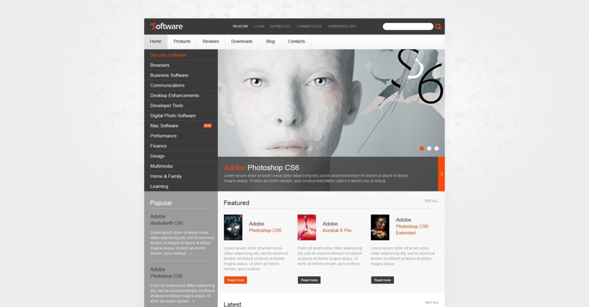 Dit gratis WordPress-thema voor een softwarebedrijf heeft meerdere pagina's en blokken die specifiek zijn voor softwarewebsites. Het heeft de volgende kenmerken: Admin Panel, Blog, HTML plus JS. Het is compatibel met WordPress ✅3.2.x - 3.4.x,3.5.x. De ontwerpstijl is neutraal.