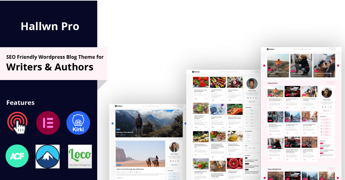 Hallwn Pro is een modern WordPress premium blogthema dat geweldig is voor het delen van persoonlijke ervaringen, levensstijl en het schrijven van reisblogs. Het is een eenvoudig, razendsnel, elegant en perfect WordPress-thema voor blogs. Het is volledig mobielvriendelijk en het beste ontwerp in zijn klasse voor alle bloggers en schrijvers. Degenen die (EAT) expertise, autoriteit en betrouwbaarheid willen bewijzen, moeten dit WordPress-thema gebruiken. Dit thema wordt ook door AdSense en Ezoic ondersteund. De lay-out van deze blogsite is volledig compatibel met Elementor en Gutenburg Builder, zodat u lezers over de hele wereld kunt aanspreken. Iedereen kan de inhoud van een website eenvoudig installeren en bijwerken met Hallwn Addon en Elementor drag & Drop builder.