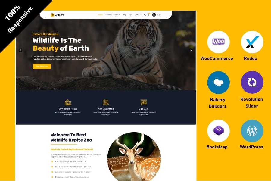 Het Wildlife for WooCommerce WordPress-thema bevat veel kenmerken en een mooi ontwerp. Het is geschikt voor dierentuinen, dierenwinkels, dierenklinieken, dierenverzorging, avonturen, dierenparken, dieren- en huisdierenverzorging, honden- en kattentrainers, dieren in het wild en entertainment. Door dit thema te gebruiken, kunt u nog veel meer diergerelateerde websites maken. Dit thema wordt ook geleverd met een demo-importoptie met één klik, meerdere kop- en voettekstontwerpen, kleuropties, getuigenissen en team, die uw prestaties in realtime laten zien! Het thema ondersteunt WooCommerce, waardoor winkels voor voedsel voor huisdieren, dieren in het wild, dierlijke producten, enz. mogelijk zijn. Je krijgt veel korte codes met het thema. Door dit thema te gebruiken, kunt u de website naar eigen wens maken. Wildlife is een responsief thema waarbij alle apparaten met meerdere browsers compatibel zijn. U kunt dus uw bedrijf starten met het thema dieren in het wild. Dit thema is volledig gebouwd met uw bedrijf in gedachten, wat u zal helpen uw bedrijf te laten groeien. Met het Wildlife-thema krijgt u gratis twee premium plug-ins.