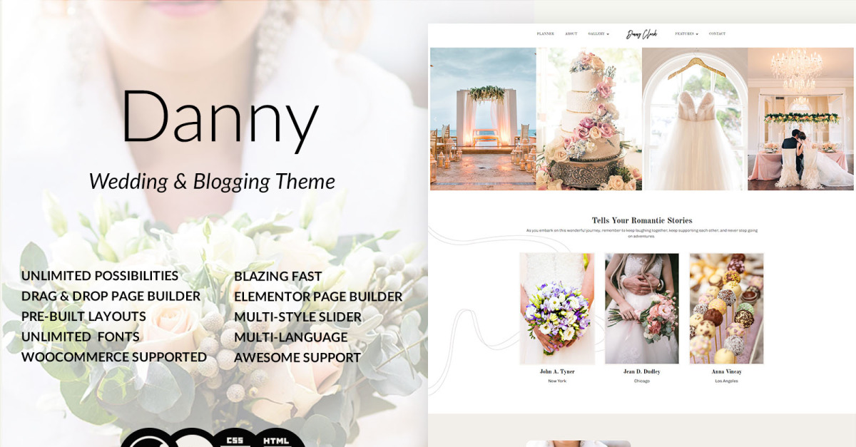 Maak kennis met Danny : het voortreffelijke WordPress-thema voor trouwfotografie en studio, gemaakt met nauwgezette aandacht voor detail en een diepgaande toewijding om de essentie van liefde en kunstenaarschap vast te leggen. Perfect geschikt voor trouwfotografen, creatieve studio's en beeldend kunstenaars. Danny combineert elegantie met functionaliteit om uw portfolio met gratie en verfijning te presenteren.