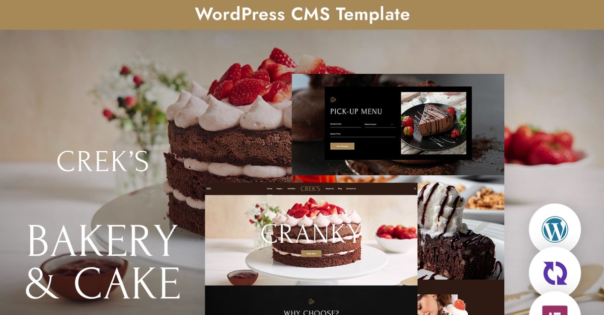 "Creks", een premium WordPress-thema speciaal ontworpen voor banketbakkers, bakkerijen en zoetwarenbedrijven, combineert elegantie met functionaliteit om een aantrekkelijke online aanwezigheid te creëren. Met een modern, aantrekkelijk ontwerp is dit thema perfect om taarten, gebak en bakkerijproducten op een onweerstaanbare manier te presenteren.
