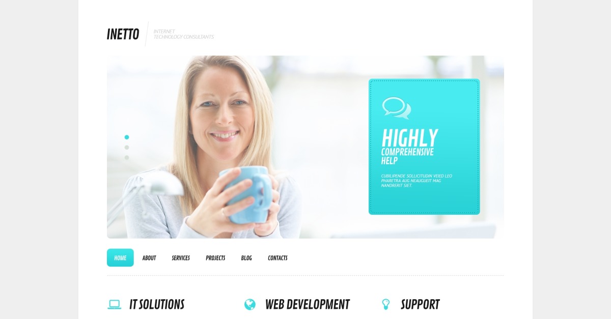 Ja, u kunt de WordPress-ontwerpsjabloon voor Internet Company in elke gewenste mate aanpassen. U kunt echter niet een koptekst van de sjabloon gebruiken voor het ene project en afbeeldingen uit de sjabloon voor het andere project.