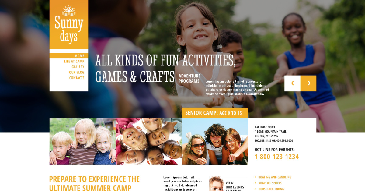 Het grote voordeel van het kopen van een WordPress-ontwerpthema voor kinderzomerprogramma's is de prijs: u krijgt een ontwerp van hoge kwaliteit voor slechts $ 20- $ 70. U hoeft geen webdesigner of webdesignstudio in te huren. Het tweede voordeel is het tijdsbestek: het duurt gewoonlijk 5-15 dagen voordat een goede ontwerper een webpagina van een dergelijke kwaliteit produceert.