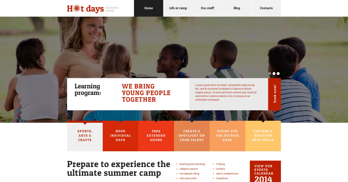 Dit is het WordPress-ontwerpthema Youth Summer Camp met Cherry Framework