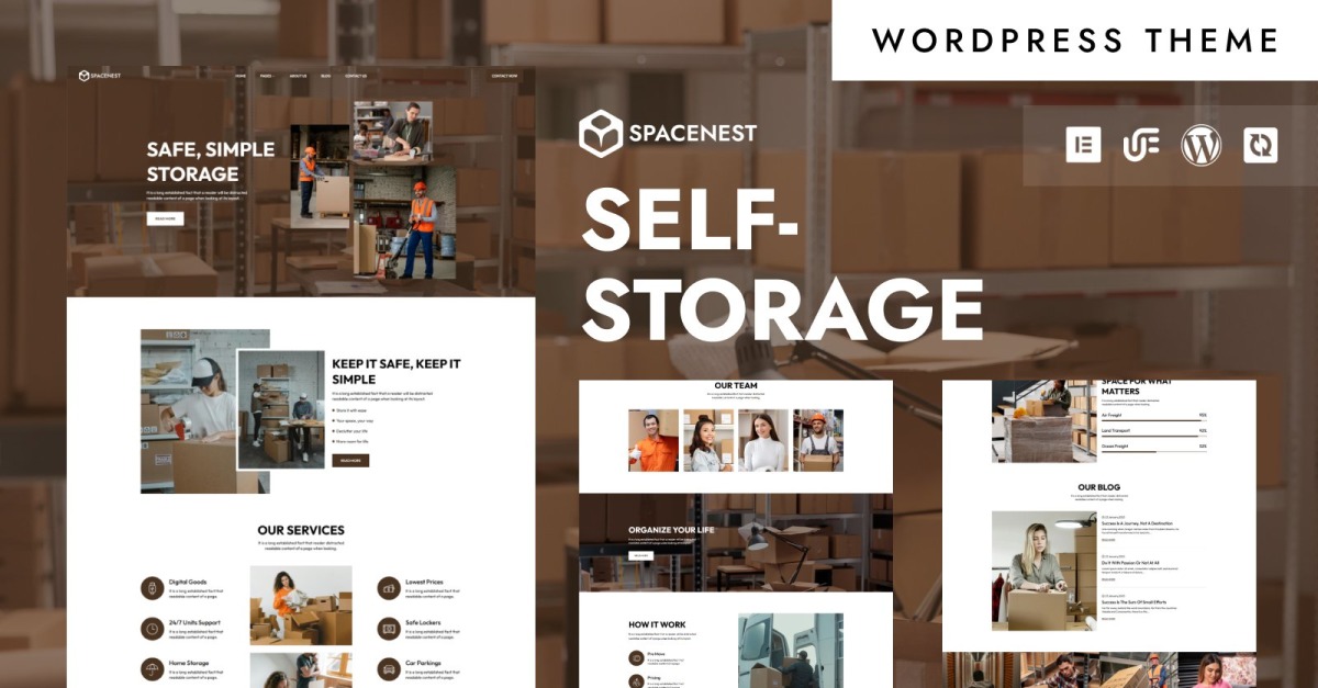 SpaceNest - Zelfopslag- en verhuisoplossingen WordPress Elementor-thema
