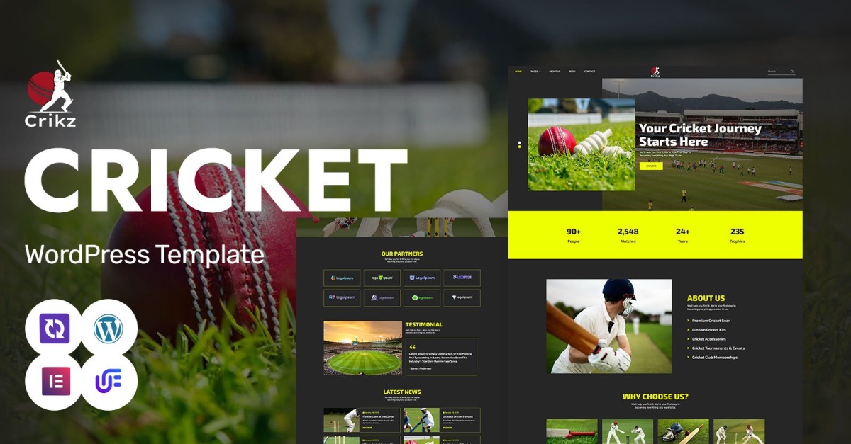 Crikz - Cricket Academie en Coaching WordPress Elementor Thema