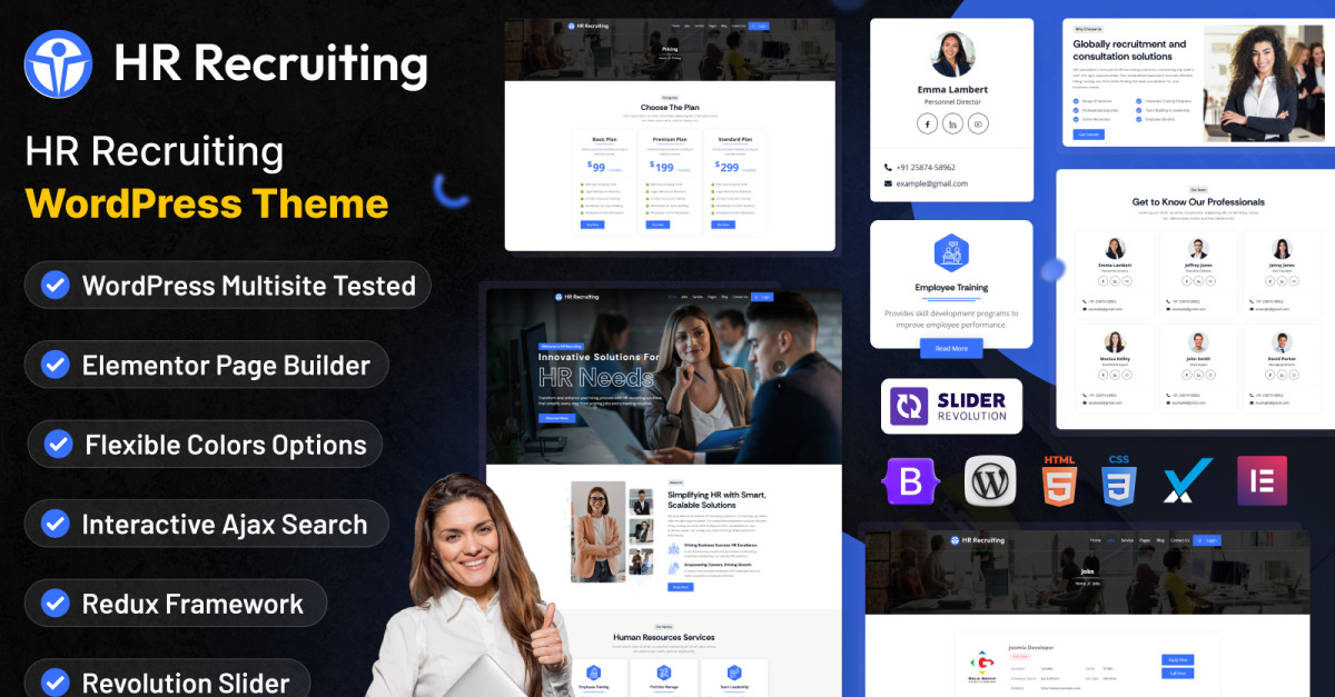 Het thema bevat een aantal uitstekende plugins, zoals WP Job Manager en Resume Manager , die de diensten van HR-bureaus verbeteren door het beheer van cv's en banen te vereenvoudigen. U kunt de prachtige functies van de plugins gebruiken om de banen of vacatures te presenteren. Daarnaast kunt u de geweldige lay-out en functies van het thema gebruiken om de ideale zakelijke HR-bedrijfswebsite te maken. Het is de ideale keuze vanwege de autoresponders, cross-browser compatibiliteit en volledig responsief ontwerp.